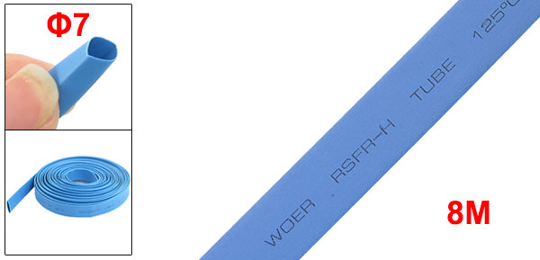 Ratio 2:1 7mm Dia Blue Polyolefin Heat Shrinkable Tube 8M Long
