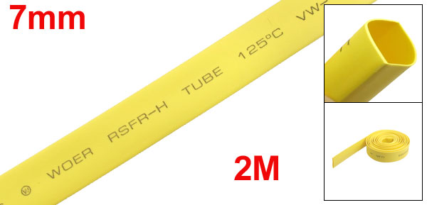 Ratio 2:1 7mm Dia Yellow Polyolefin Heat Shrinkable Tube 2M 6.6Ft