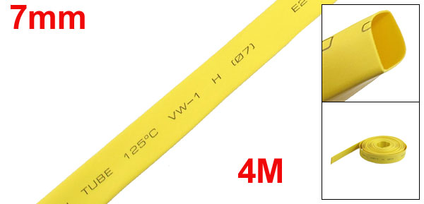 Ratio 2:1 7mm Dia Yellow Polyolefin Heat Shrinkable Tube 4M 13.1Ft