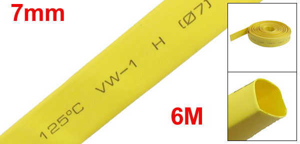 Ratio 2:1 7mm Dia Yellow Polyolefin Heat Shrinkable Tube 6M 19.7Ft