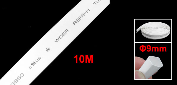 Ratio 2:1 9mm Dia White Polyolefin Heat Shrinkable Tube 10M Long