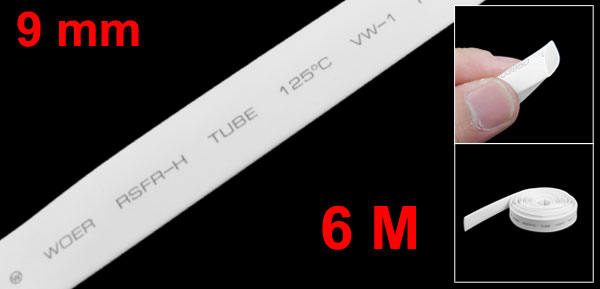 Ratio 2:1 9mm Dia White Polyolefin Heat Shrinkable Tube 6M Long