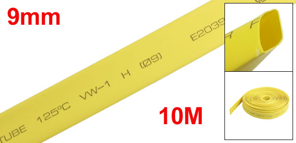 Ratio 2:1 9mm Dia Yellow Polyolefin Heat Shrinkable Tube 10M Long