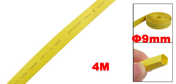 Ratio 2:1 9mm Dia Yellow Polyolefin Heat Shrinkable Tube 4M Long