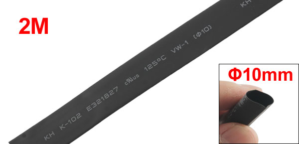 Ratio 2:1 Black Polyolefin 10mm Dia Heat Shrink Shrinkable Tube 2M