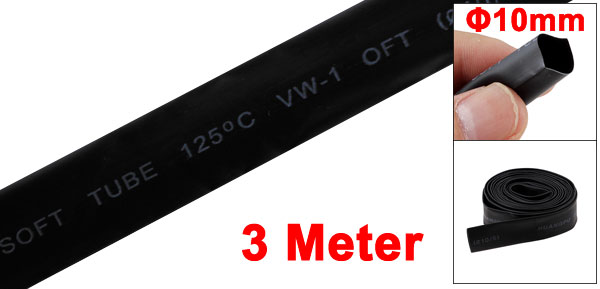 Ratio 2:1 Black Polyolefin 10mm Dia Heat Shrink Shrinkable Tube 3 Meter