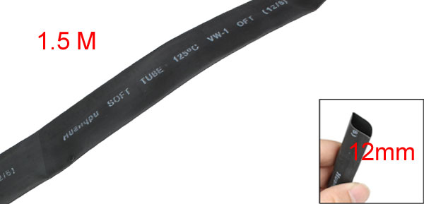 Ratio 2:1 Black Polyolefin 12mm Dia Heat Shrink Shrinkable Tube 1.5M