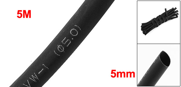 Ratio 2:1 Black Polyolefin 5mm Dia Heat Shrink Shrinkable Tube 5M