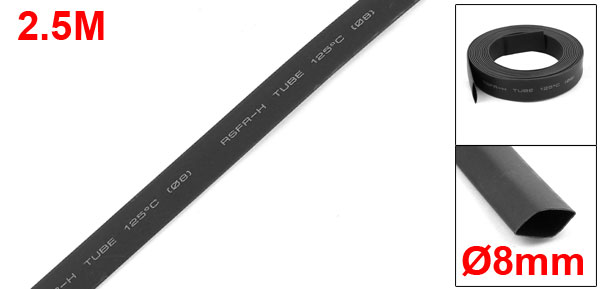 Ratio 2:1 Black Polyolefin 8mm Dia Heat Shrink Shrinkable Tube 2.5M 8Ft