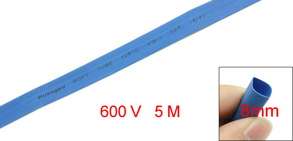 Ratio 2:1 Blue Polyolefin 8mm Dia Heat Shrink Shrinkable Tube 5M