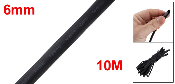 Ratio 2:1 Polyolefin 6mm Dia Heat Shrink Shrinkable Tube 10M Black