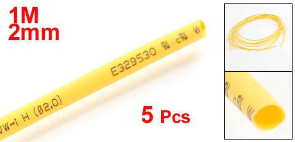 Ratio 2:1 Yellow Polyolefin 2mm Dia Heat Shrink Shrinkable Tube 3.3Ft 5 Pcs