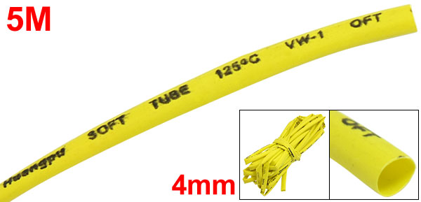 Ratio 2:1 Yellow Polyolefin 4mm Dia Heat Shrink Shrinkable Tube 5M