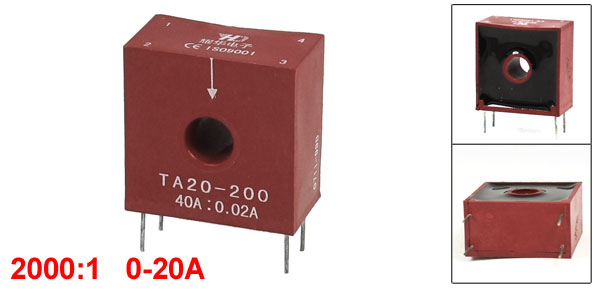 Product Name Current Transformer Model TA20-200 Dielectric Strength 6000V AC/1 Min. Working Frenquency 20Hz~20KHz Tranformation Ratio 2000:1 Input Current 0-20A Output Current 0-20mA Sampling Resistance 400 Sampling Voltage 8V Size 32 x 16 x 32mm/1.26" x 0.63" x 1.26" (L*W*H) External Material Plastic, Epoxy Resin Color Carmine Weight 41g Package Content 1 x Current Transformer - Reviews
