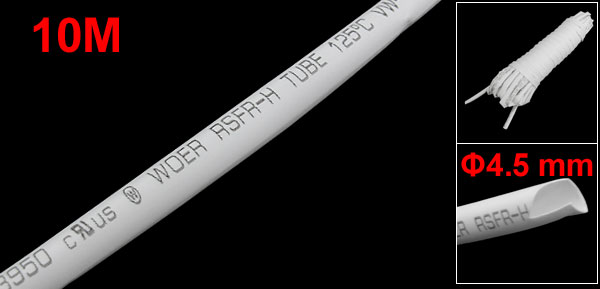 Ratio 4.5mm Dia White Polyolefin Heat Shrinkable Tube 10M 32.8ft