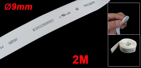 Ratio 9mm Dia White Polyolefin Heat Shrinkable Tube 2M 6.6Ft
