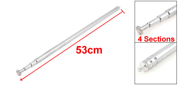 Product Name Telescopic Antenna for 8088 RC Helicopter Model Toy Thread Diameter 3mm/ 0.12" Section Number 4 Folding Size 160 x 5mm / 6.3" x 0.2" (L*D) Unfolding Length 53cm / 1.7Ft Main Color Silver Tone Material Metal Weight 7g Package 1 x Telescopic Antenna - Reviews