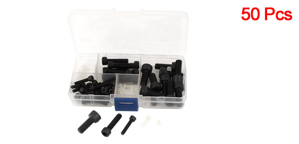 10Pcs: M8 x 1.25mm x 45mmBox Size 127 x 70 x 23mm/5" x 2.8" x 0.91"(L*W*H) Material Metal , Plastic Color Black,White Net Weight 287g Package Content 50Pcs(±2%) x Cap Head Screw Set w Box