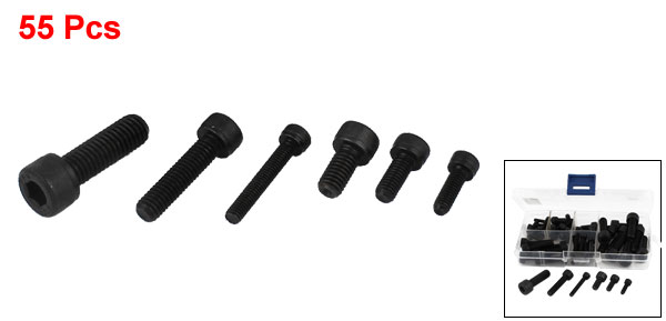 RC Airplane Aircraft Black Metal Hexagonal Socket Cap Head Screw Set 55 Pcs