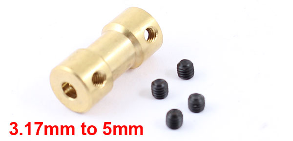 Product Name Motor Shaft Coupling Type(Inner Hole Dia) 3.17mm to 5mm/0.12" to 0.2" Total Size 2 x 0.9cm/0.79" x 0.35"(L*D) Thread Dia 2mm/0.08" Main Color Gold Tone Material Brass Weight 5g Package Content 1 x Motor Shaft Coupling
