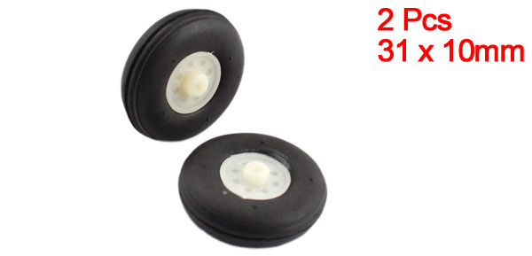 Product Name RC Airplane PU Wheel Wheel Size 31 x 10mm/1.25" x 0.4"(D*T) for Shaft Dia 1.5mm/0.06" Material Rubber, Plastic Color Black, White Net Weight 4g Package Content 2Pcs x RC Airplane PU Wheel
