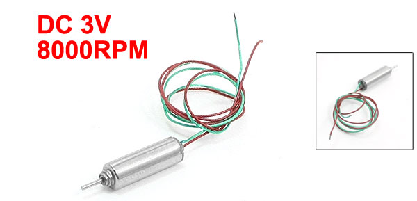 Product Name DC Motor Rated Voltage DC 3V Rated Speed 8000RPM Productivity 95 Shaft Size 0.8 x 4mm/ 0.031" x 0.16"(D*L) Body Size 6 x 12mm/ 0.24" x 0.47"(D*L) Total Length 17mm/ 0.67" Cable Length 18cm/ 7.1" Main Material Metal Main Color Silver Tone Weight 2g Package 1 x DC Motor - Reviews