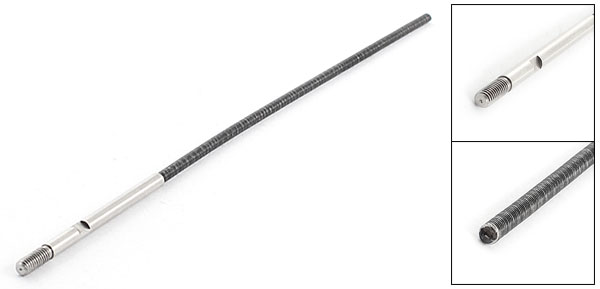 Product Name RC Flexible Shaft Thread Size 10 x 4mm/ 0.16" x 0.4"(L*D) Flexible Part Size 155 x 3mm / 6" x 0.12" (L*D) Total Length 210mm/8.3" Color Silver Tone Material Metal Weight 10g Package Content 1 x RC Flexible Shaft