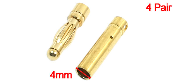 RC Brushless Motor Part Gold Plated Banana Bullet Connector Adapter 4mm 4 Pair
