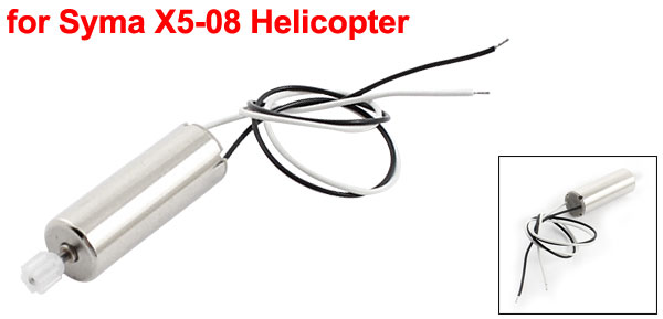DetailsRC Helicopter 2-Wire Magnet Motor w Main Gear for Syma X5-08  Product Name RC Helicopter Motor for for Syma X5-08 Helicopter Main Gear Size 3 x 3mm/0.12" x 0.12"(L*W) Wire Length 130mm/5" Body Size 20 x 7mm/ 0.8" x 0.28"(L*D) Material Magnet, Plastic Weight 6g Package 1 x RC Helicopter Motor (NON-OEM )