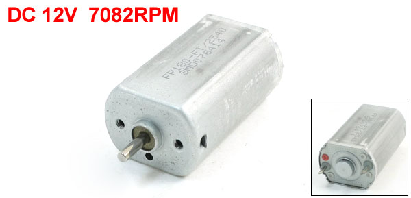 Product Name DC Micro Motor Model FF-180 Rated Voltage DC 12V Speed 7082RPM No-load Speed 8500RPM Output 1.17W Body Size 36 x 20 x 15 mm / 1.4" x 0.8" x 0.6" (L*W*T) Shaft Dia. 2mm/ 0.08" Total Length 45mm / 1.8" Main Color Silver Tone Material Metal Weight 31g Package 1 x DC Micro Motor - Reviews