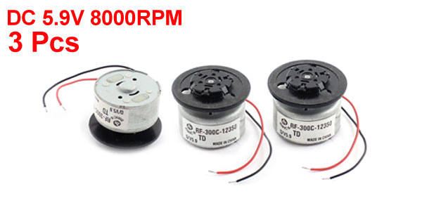 Product Name DC Motor Rated Voltage DC 5.9V Output Speed 8000RPM Motor Size 25 x 12mm/ 1" x 0.47"(D*H) Shaft Diameter 2mm Main Color Silver Tone,Black Material Metal Weight 68g Package 3 x DC Motor - Reviews