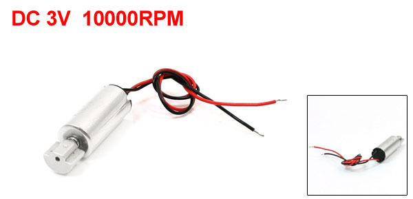 Product Name Coreless Motor Rated Voltage DC 3V Speed 10000RPM Body Size 6 x 15mm / 0.24" x 0.6" (D*H) Wire Length 19mm /0.75" Total Length 80mm/ 3.1" Main Color Silver Tone Material Metal Weight 4g Package 1 x DC Coreless Motor - Reviews