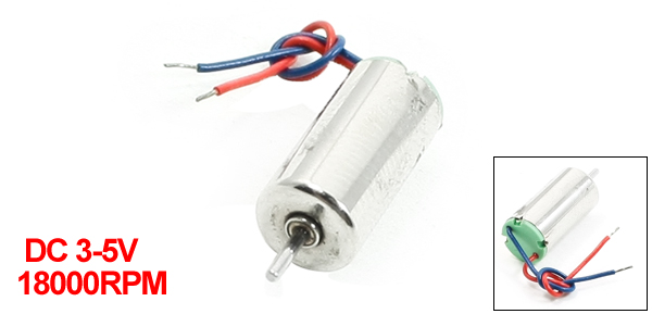 Product Name Coreless Motor Rated Voltage DC 3-5V Speed 18000RPM Drive Shaft Dia 0.8mm/0.0315 Body Size 6 x 12 mm / 0.24" x 0.47" (D*H) Wire Length 3cm / 1.2" Main Color Silver Tone Material Metal Net Weight 2g Package 1 x DC Coreless Motor - Reviews