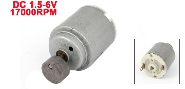 Product Name DC Micro Motor Model R140 Rated Voltage DC 1.5-6V Speed 17000RPM Body Size 25 x 21mm / 1" x 0.83"(H*D) Shaft Dia. 2mm/ 0.08" Total Length 38mm / 1.5" Main Color Silver Tone Material Metal Weight 22g Package 1 x DC Micro Motors - Reviews