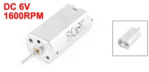 Product Name DC Motor Model FF-050SB Working Voltage 2-8V Rated Voltage DC 6V Output Speed 1600RPM Current 46mA Motor Size 27 x 16 x 12mm/ 1" x 0.63"x 0.47"(L*W*H) Shaft Diameter 1.5mm Shaft Length 9mm/ 0.35" Main Color Silver Tone Material Metal Weight 19g Package 1 x DC Motor - Reviews