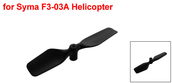 Product Name RC Helicopter Tail Blade Fit for for Syma F3-03A Helicopter Shaft Hole Dia 1mm / 0.04" Shaft Height 6mm/0.24" Rotating Diameter 36mm /1.3" Blade Width(Max.) 7mm/0.28" Material Plastic Color Black Net Weight 1g Package Content 1 x RC Helicopter Tail Blade (Non-OEM)