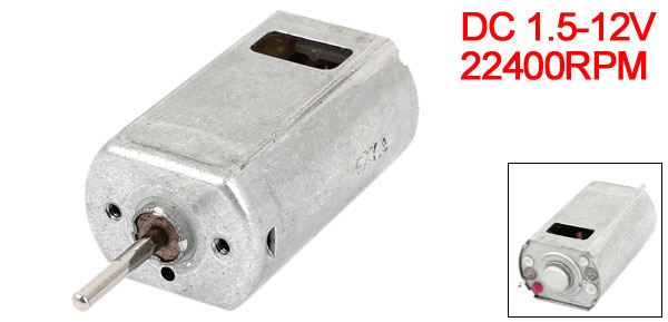 Product Name Electric Motor for RC Airplane Rated Voltage DC 1.5-12V No-load Speed 22400RPM Shaft Size 2 x 12mm/0.08" x 0.47"(D*L) Body Size 32 x 20 x 15mm / 1.3" x 0.8" x 0.6" (L*W*T) Main Color Silver Tone Material Metal Weight 38g Package 1 x Motor - Reviews
