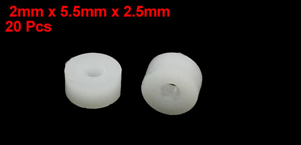 Product Name Spacer Gasket Sleeve Fit for for RC Toy Model Total Size 2 x 5.5x2.5mm/0.08" x 0.22" x 0.1"(Inner Dia*Outer Dia*Height) Material Plastic Color White Net Weight 3g Total Weight 3g Package Content 20 Pcs x Spacer Gasket Sleeve - Reviews