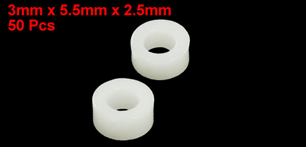 Product Name Spacer Gasket Sleeve Fit for for RC Toy Model Total Size 3 x 5.5x2.5mm/0.12" x 0.22" x 0.1"(Inner Dia*Outer Dia*Height) Material Plastic Color White Net Weight 4g Total Weight 4g Package Content 50(±2%) Pcs x Spacer Gasket Sleeve - Reviews