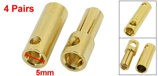 RC Model Gold Tone Metal Male Female Banana Bullet Plug Connector 5mm 4 Pairs