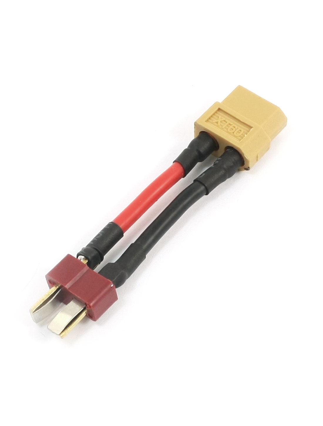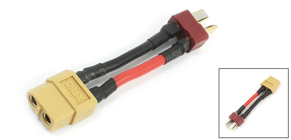DetailsRC Plane T Male Plug to XT60 Socket Wire Leads Adapter 14AWG 4.5cm  Product Name RC Plane Charging Adapter Mateiral Metal, Plastic Pluge Type T Male Plug, XT60 Socket Wire Type 14 AWG Wire Length(each) 4.5cm/1.8" Color Red,Black Weight 11g Package Content 1 x RC Plane Charging Adapter
