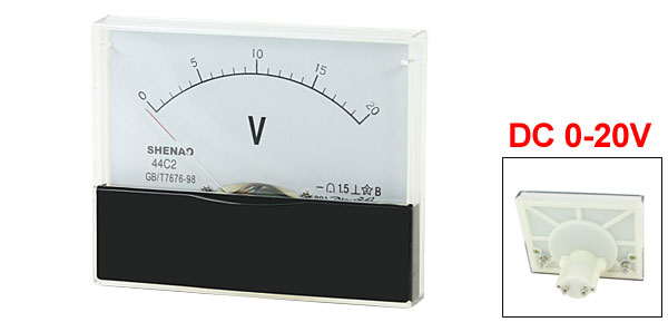 Product Name Analog Voltmeter Model 44C2 Measuring Voltage Range DC 0-20V Accuracy Class 1.5 Meter Face Size(Approx) 9.8 x 8cm/3.8" x 3.15"(L*W) Overall Depth 5.8cm / 2.28" Color White, Clear, Black Net Weight 109g Package 1 x Analog Voltmeter - Reviews
