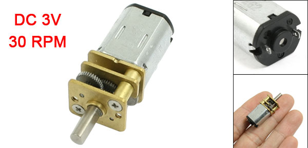 Speed 30 RPM Shaft Diameter 3mm/ 0.118" Gearbox Size 25 x 12 x 10mm/ 1" x 0.5" x 0.4" (L*W*H) Overall Size 33 x 12 x 10mm/ 1.3" x 0.5" x 0.4" (L*W*H) Main Color Silver Tone Material Metal Weight 10g Package 1 x DC Geared Motor - Reviews