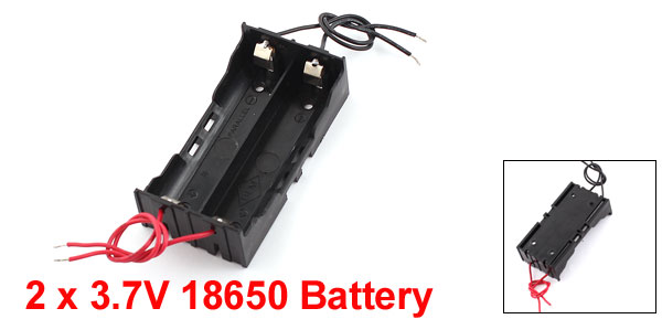 DetailsRectangle Black Plastic 4-Wired 2 x 3.7V 18650 Battery Holder Box Case  Main Color Black Fit for 2 x 3.7V 18650 Battery(Not Included The Battery) Net Weight 17g Country of Manufacture CHINA Package Content 1 x Battery Holder Material Plastic, Metal Total Size 78 x 40 x 21mm/3" x 1.6" x 0.87"(L*W*H) Fixing Hole Dia 3mm/0.12" Wire Length 11cm/4.3" Fixing Hole Center Distance 58 x 19mm/2.3" x 0.75"(L*W)