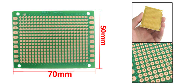 Product Name Universal PCB Board Hole Dia(Approx) 1mm / 0.039" Hole Pitch(Approx) 1.7cm / 0.07" Size(Approx) 70 x 50mm / 2.8" x 2"(L*W) Thickness(Approx) 1.5m / 0.059" Material FR-4 Color As Picture Shown Net Weight 7g Package Content 1 x Universal PCB Board - Reviews