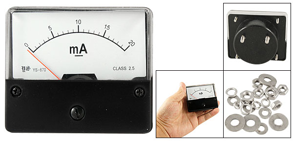 Product Name Analog Ammeter Measuring Current Range DC 0 - 20mA Accuracy Class 2.5 Meter Face Size(Approx) 7 x 6cm/ 2.7" x 2.3" (L*W) Thread Size 0.28 x 0.75cm / 0.11" x 0.30" (D*L) 0.38 x 0.8cm / 0.15" x 0.3" (D*L) Overall Depth 4.3cm/ 1.7" Color White, Black Net Weight 68g Package Content 1 x Analog Ammeter Fitting Part - Reviews