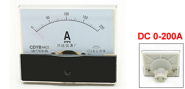 DC Current Panel Meter Model No. 44C2 Scale Range DC 0-200A Voltage 75mV Accuracy Class 1.5 Back Screw Diameter 4mm/ 0.16" Panel Size 10 x 8 x 1.2cm/ 4" x 3.1" x 0.47" (L*W*T) Overall Depth 5.9cm/ 2.3" Color White, Black, Clear Main Material Plastic, Metal Weight 116g Package 1 x DC Current Panel Meter - Reviews
