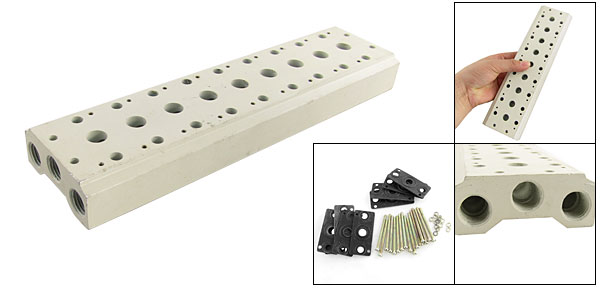 Product Name Solenoid Valve Base Stations 9 Nominal Bore 10mm Dimension 230 x 59 x 23mm/ 9" x 2.3" x 0.9" (L*W*T) Mount Size 219 x 23mm/ 8.6" x 0.9" (L*W) Tube Hole G1/4Material Ceramic Color As Picture Shown Net Weight 644g Package Content 1 x Solenoid Valve Base 9 x Rubber Gasket 18 x Screws - Reviews