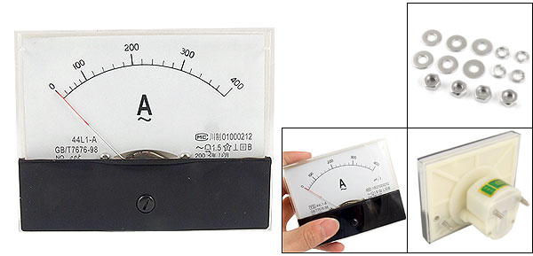 Product Name Analog Ammeter Model 44L1-A Type AC Accuracy Class 2.5 Measuring Current Range AC 0-400A Total Size 9.8 x 7.8 x 6.5cm/3.9'' x 3.1'' x 2.6'' (L*W*H) Base Size(Not Included Screw) 4.9 x 3.6 x 3.3cm/1.9'' x 1.4'' x 1.3'' (L*W*H) Thread Dia. 0.4cm/0.16'' Material Pllastic Color Black, Clear Net Weight 147g Package Content 1 x AC Analog Ammeter
