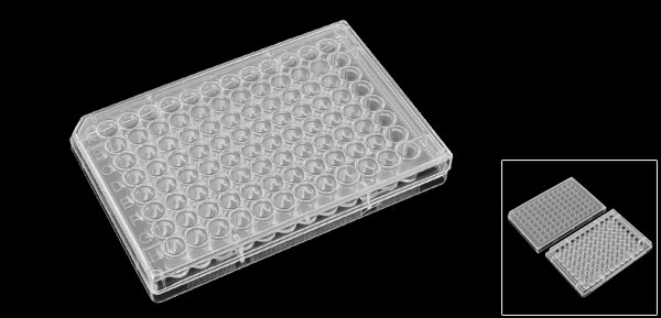 Rectangle Shape Clear Polystyrene 96 Wells Cell Culture Plate w Cover